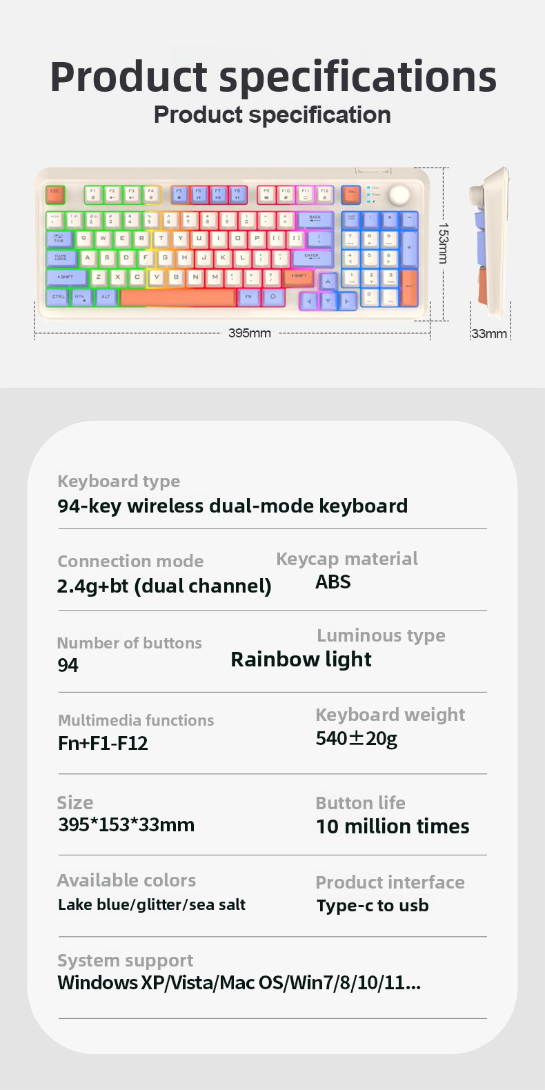 Keyboard Dimensions: 39.5 x 15.3 x 3.3 cm