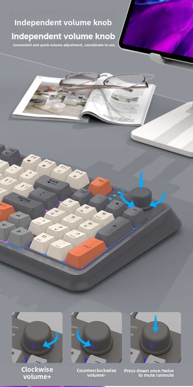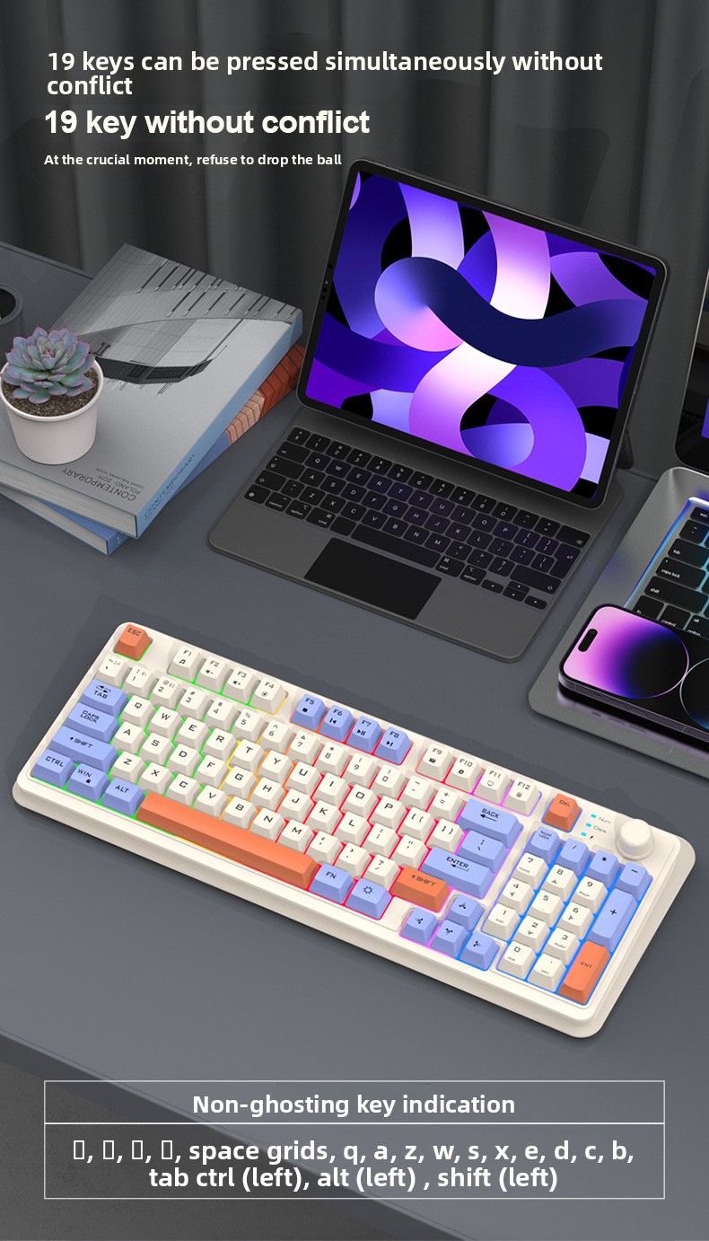 Backlit Keys: Mixed backlighting enhances visibility in low-light conditions.
