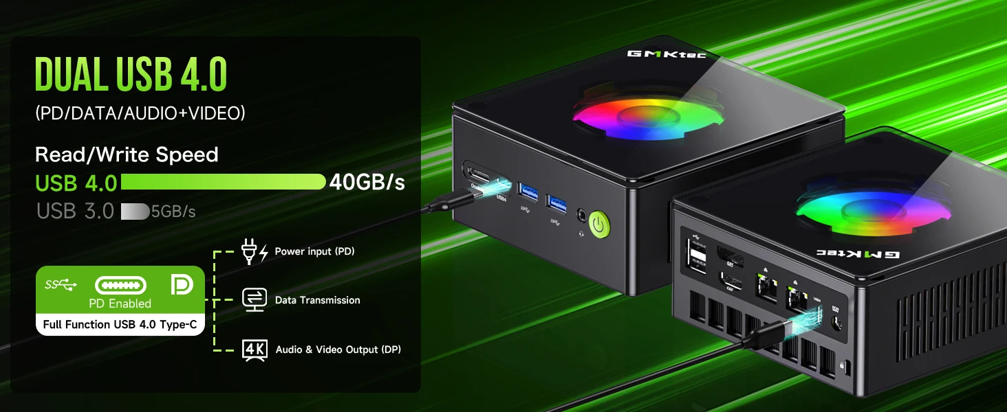 2 x USB 4.0 Type-C (DP/PD/Data 100W) |