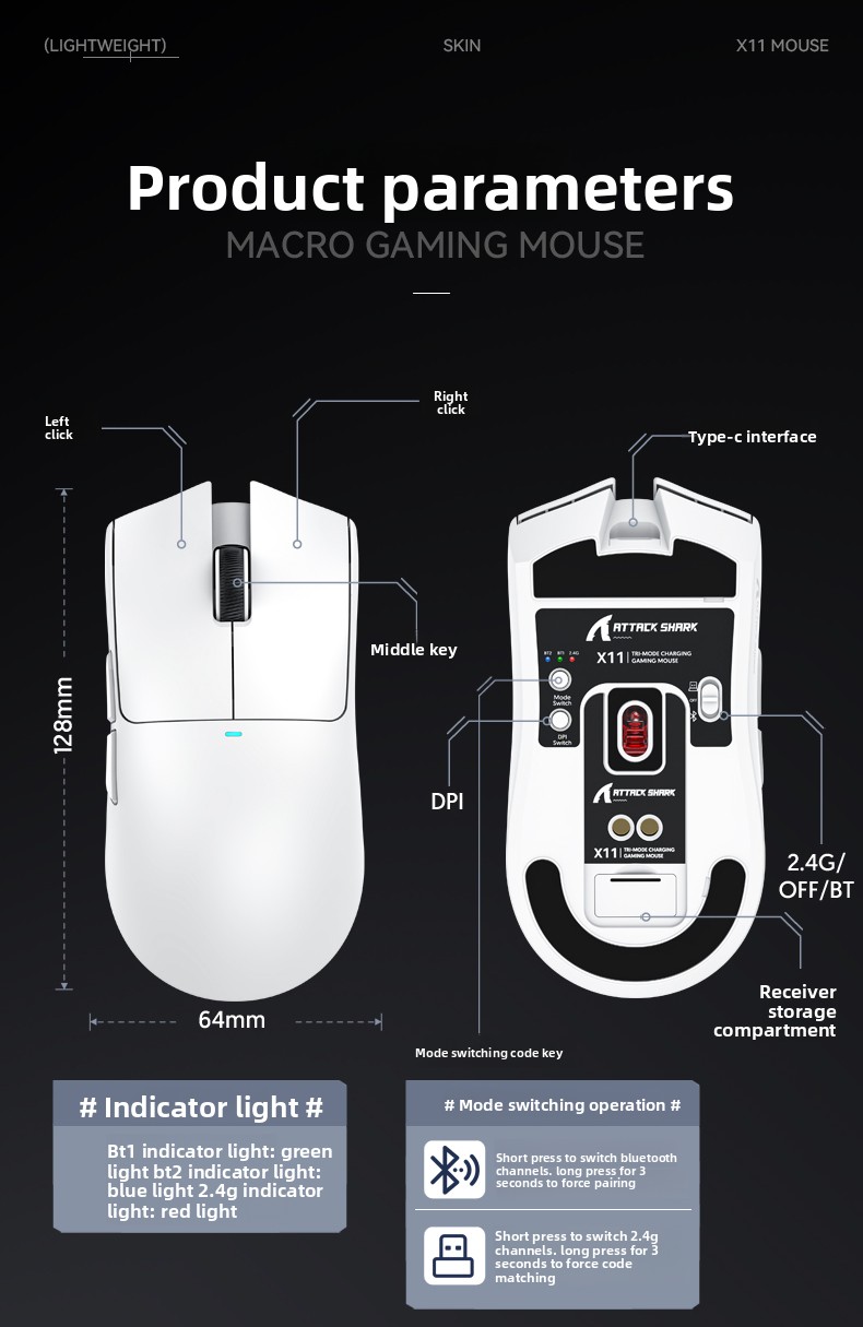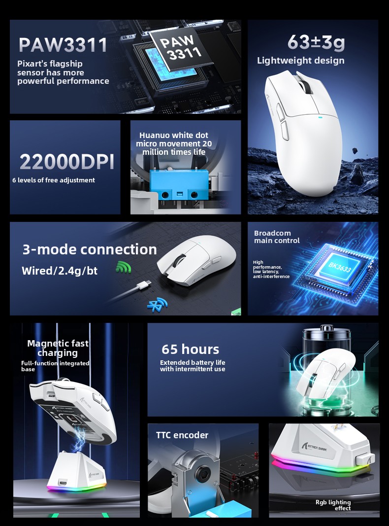 High-Performance Sensor: Equipped with PAW3311 optical sensor for precise tracking and responsive gameplay.